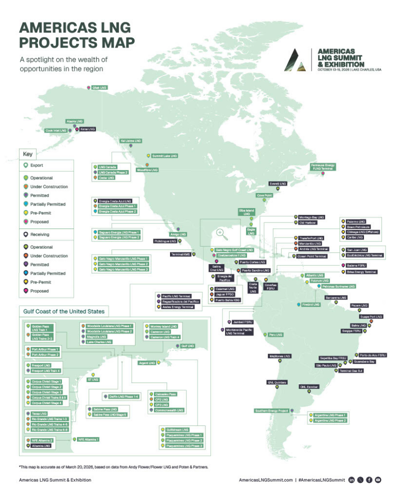 Click the link below to access an exclusive map of all the LNG export and import projects that are operational, under construction, permitted, partially permitted and pre-permit – an invaluable resource to pinpoint the opportunities that exist in the region.